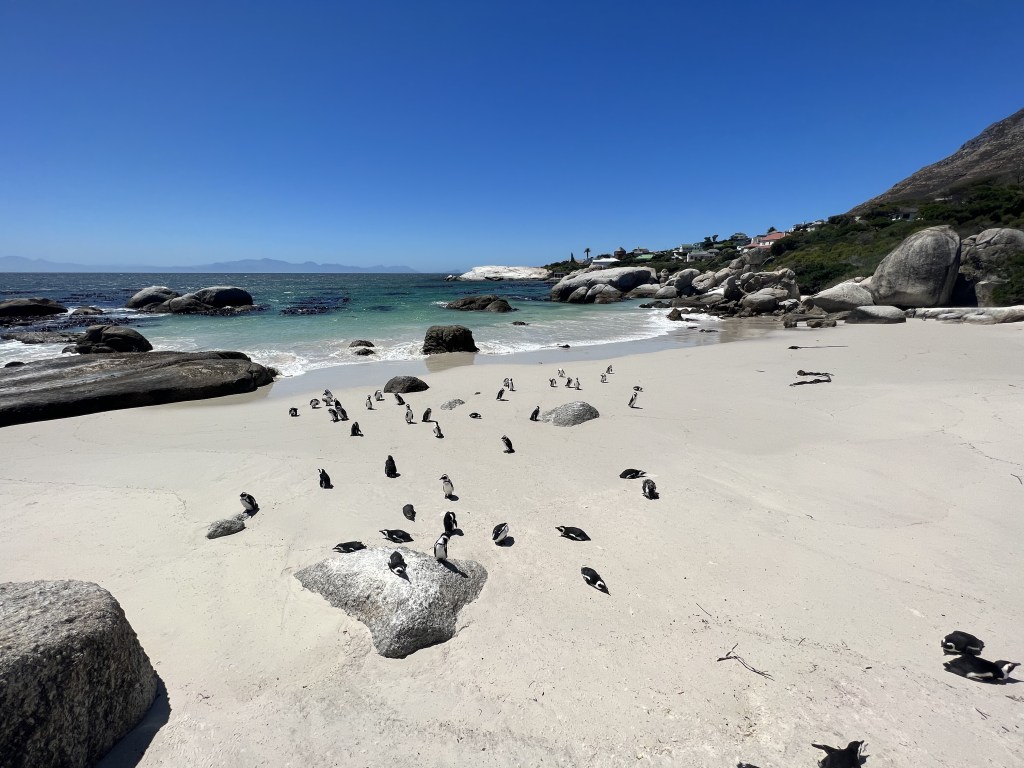 Boulders Beach Penguins this is a great place to visit if you’re doing a drive of the Cape (see later). It’s a penguin sanctuary and amazing to see the animals living in this little haven on the beach – they like it so much they never migrate!